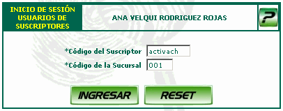 Ventana en la cual se solicita al usuario digitar el cdigo del suscriptor y el cdigo de la sucursal del afiliado, para poder tener acceso a la ventana de usuarios y horarios.